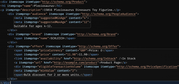 Now a machine can see the price, the description, the brand, the discount, and the age applicability. It knows it is for a product, not an ad on the site.