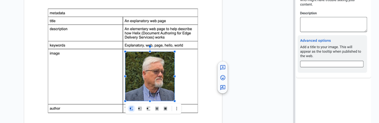 Documents need descriptions, titles, etc. Edge Delivery Services tries to provide them, but it would be better if the author had control. In document authoring, we use tables to give rules.