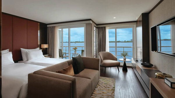 The Mekong Serenity is APT's first-ever owned river cruise ship, launched in September 2023. This luxury 5-deck, all-suite vessel accommodates just 88 passengers with a crew of 44, ensuring exceptional service with a 2:1 passenger-to-crew ratio. Built in Vietnam using local teak for floors, doors and walls, the ship reflects its destination's heritage.